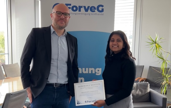 “It is a privilege to provide such an ambitious early-career researcher with the chance to present her research results,” says Michael Nitsche, Managing Director of ForveG. “We are particularly pleased that Ms. Debgupta has decided to continue her work on wholesale-related topics as part of her PhD at MATH+ The Berlin Mathematics Research Center. As a member of a larger research team, she will continue working on optimizing wholesale logistics. This is precisely the kind of research that will help the wholesale sector sustainably improve its processes and advance technology.”